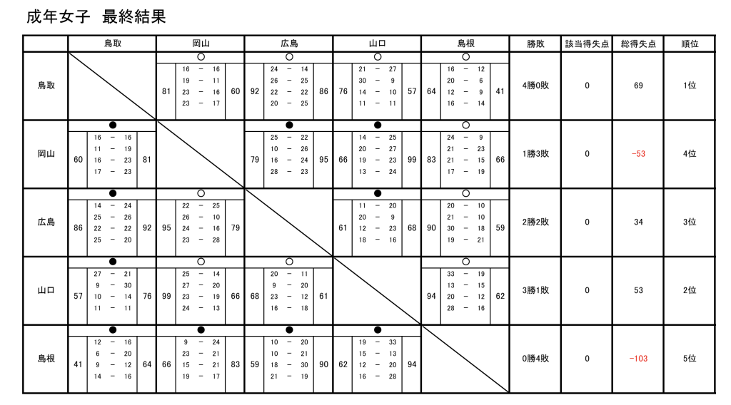 鳥取県 | 24 | 26 | 22 | 20 | 92 |