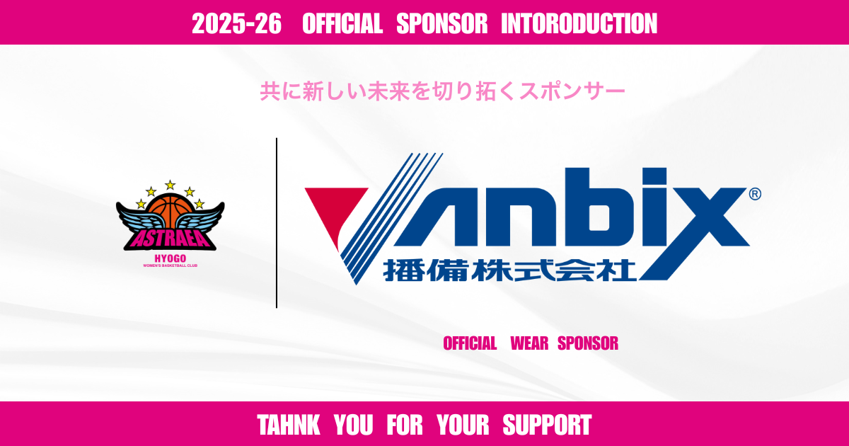 アストライアは、播備株式会社(兵庫県、姫路市代表取締役社長:守分宏)と、2025-26シーズンオフィシャルウエアスポンサー契約を更新いたしましたのでお知らせいたします。